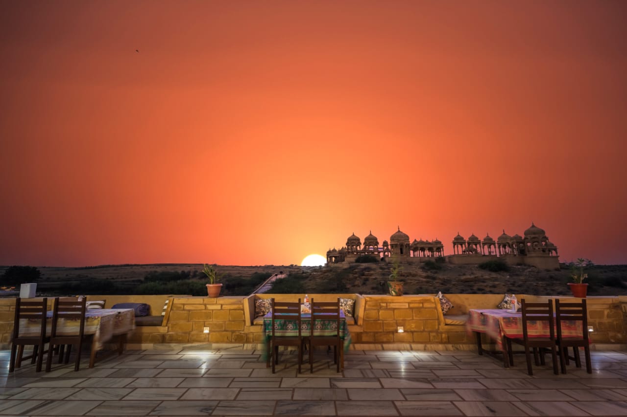 Hotel Desert Moon Jaisalmer is one of the Best Hotel to stay in Jaisalmer. Hotel is situated on amazing place near sunset point, vyas chatri, so you can enjoy the historic view of Vyas Chatri from our rooftop restaurant. Hotel Desert Moon Jaisalmer has beautiful views of jaisalmer golden fort and sunset and sunrise views. The Interior and the exterior of the hotel is so alluring which is hand carved by local artisans which gives a traditional look.