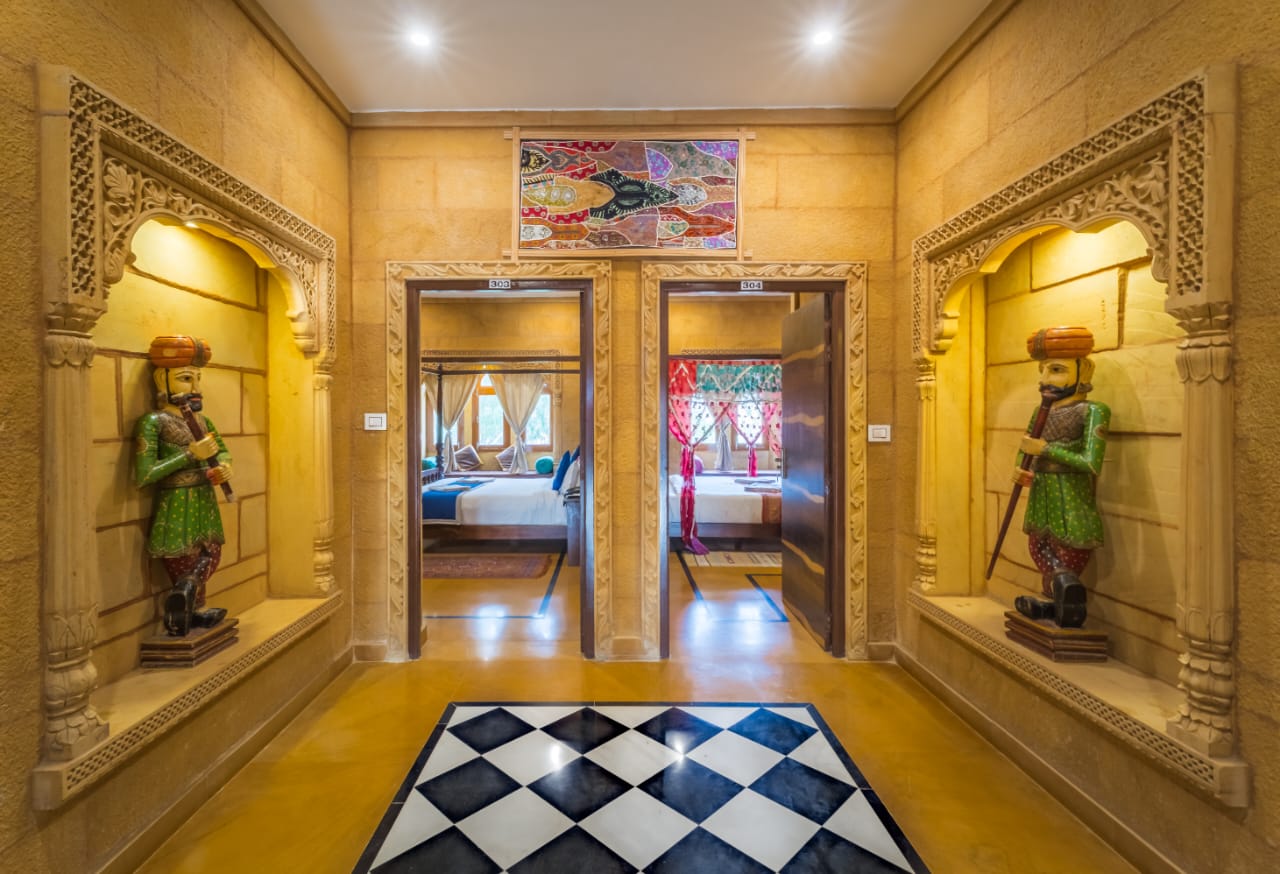 Spacious and tastefully decorated, the Deluxe Rooms blend modern luxury with traditional Rajasthani charm. With warm lighting, plush furnishings, and enhanced amenities, these rooms are ideal for guests who desire extra comfort and style during their desert getaway.